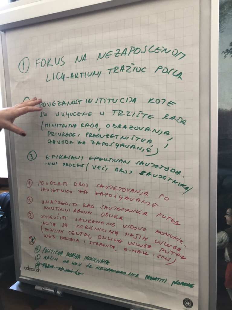 Posljednjeg dana studijske posjete, predstavnici javnih službi za zapošljavanje iz BIH učestvuju u završnoj ili wrap-up sesiji na kojoj prave rezime cjelokupne posjete, sumiraju utiske, zaključke i naučene lekcije te najvažnije, definišu oblasti i elemente koje će prenijeti iz Švicarske u svoje matične službe. Imajući u vidu da su učesnici studijske posjete, uglavnom direktori i zamjenici direktora službi za zapošljavanje preuzimanje obaveze i odgovornosti ima daleko snažniji uticaj.